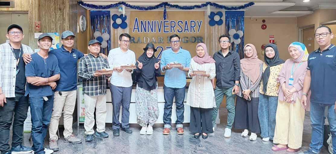 SILATURAHMI: Perwakilan Radar Bekasi, Radar Cianjur, Radar Bandung, Radar Depok dan Bogor Media Grafika (Percetakan), berkunjung memberi ucapan selamat Hari Jadi Radar Bogor ke-27 dengan membawa kue tart ulang tahun ke Graha Pena Yasmin.