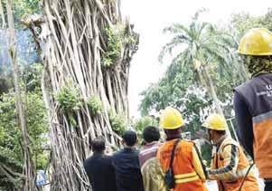 kan ber KTP merah. “Jadi KTP merah itu bukan rawan tumbang. Tapi tingkat ke kroposannya lebih dari 40 persen. Nah total yang ber KTP merah 249,” terang Devi pada Radar Bogor. Meski begitu, Devi menyebut pihaknya tidak tinggal diam. Ada beberapa langkah penangan yang dilakukannya. Seperti penebangan ataupun pemangkasan. Dari 249 pohon sudah ada 53 yang dilakukan penebangan. Sementara sisanya ditangani dengan teknik toping atau dikasib penyanggah pada sisi kiri dan kanan. “Jadi bedanya pangkas dan tebang itu, kalau pangkas tidak sampai bawah. Kalau tebang itu tidak tumbuh lagi, jadi habis. Total yang sudah kami tebang ada 53,” ucap Devi. Usia pohon tersebut juga terbilang cukup tua. Bahkan ada yang lebih dari 80 tahun. Jika ditotal secara keseluruhan total pohon di Kota Bogor ada 14 ribu.