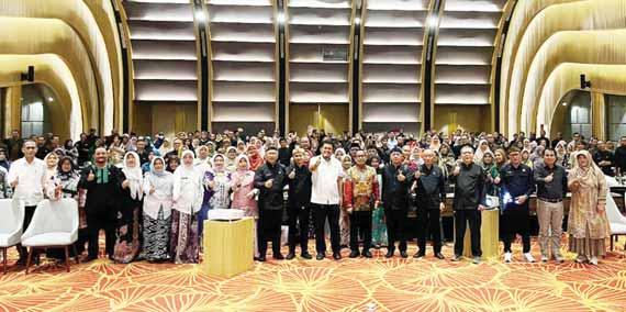 HADIRI: Perwakilan Yayasan EBU, narasumber, tamu undangan dan peserta dari kepsek dan wakasek sekolah negeri dan swasta foto bersamamengikuti workshop.