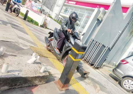 RUSAK: Oknum pengendara sepeda motor nekat melalui salah satu fasilitas trotoar yang rusak untuk menghindari kemacetan di Jalan Margonda, Kamis (6/11) kemarin.
