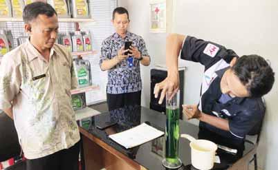 CEK KUALITAS: Pemkot Bogor melalui Dinas KUMKMDagin Kota Bogor menggelar sidak di SPBU wilayah Kota Bogor untuk mengecek kualitas kandungan BBM, Jumat (8/11).