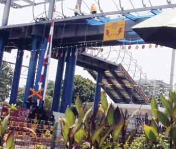 kin tampak. Rangka sky bridge itu kini sudah tersambung dan melintang di atas Jalan Kapten Muslihat.