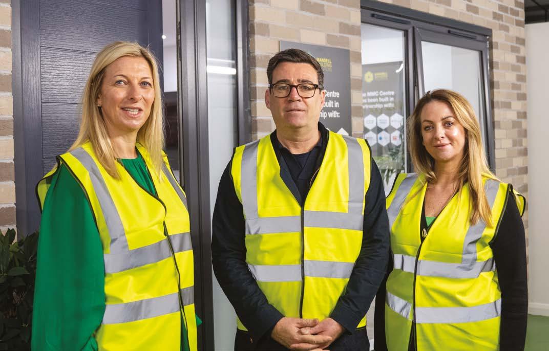 The launch was marked by a visit from Greater Manchester Mayor Andy Burnham and Aisling McCourt, GMCA’s Head of Housing Growth and Net Zero, who toured the production line and MMC Centre with Managing Director Angela Mansell and met local factory staff. During the visit, the Mayor discussed how factory-first construction can help Greater Manchester meet its housing ambitions while creating skilled local jobs and reducing carbon, waste and programme risk.