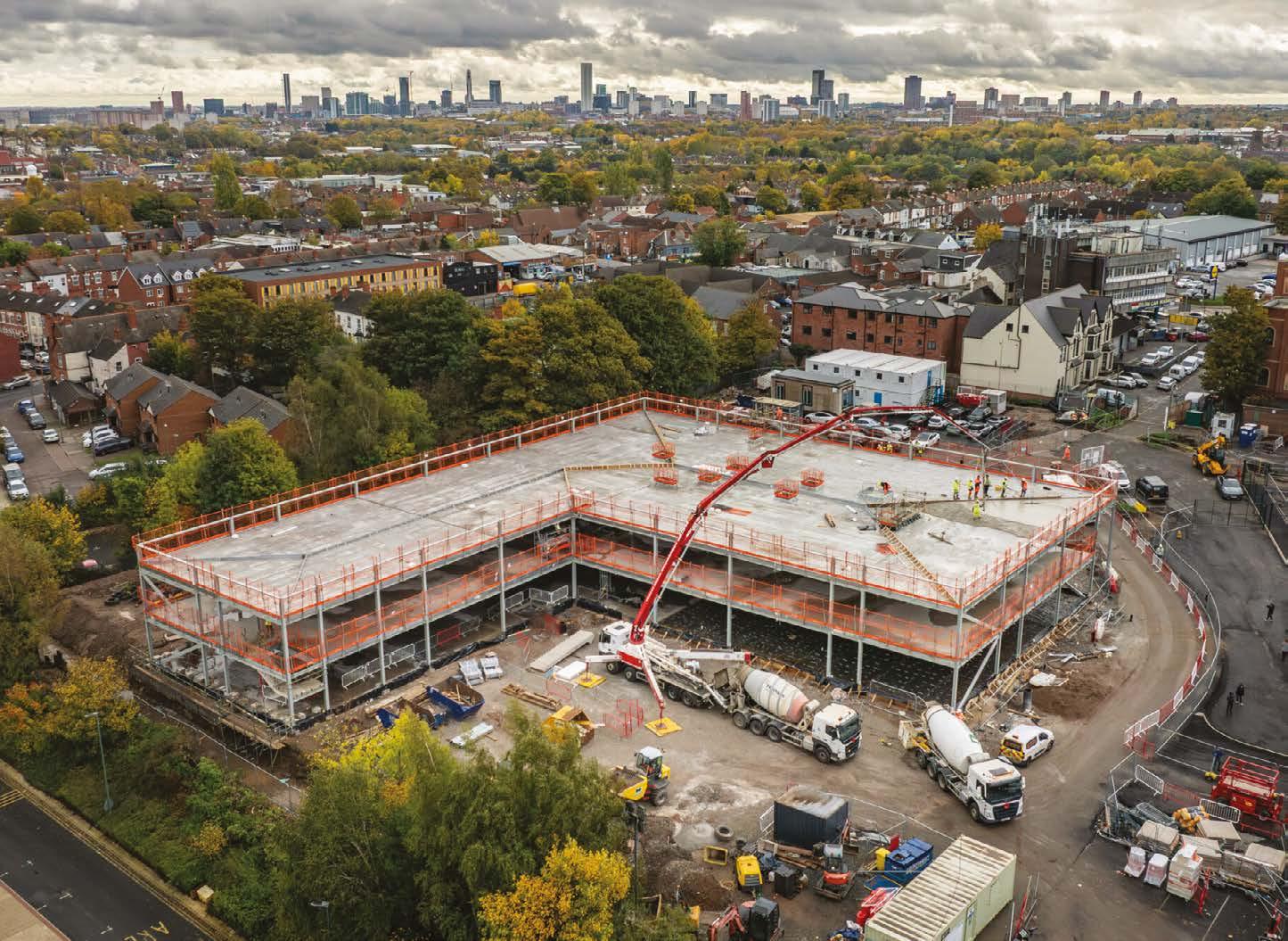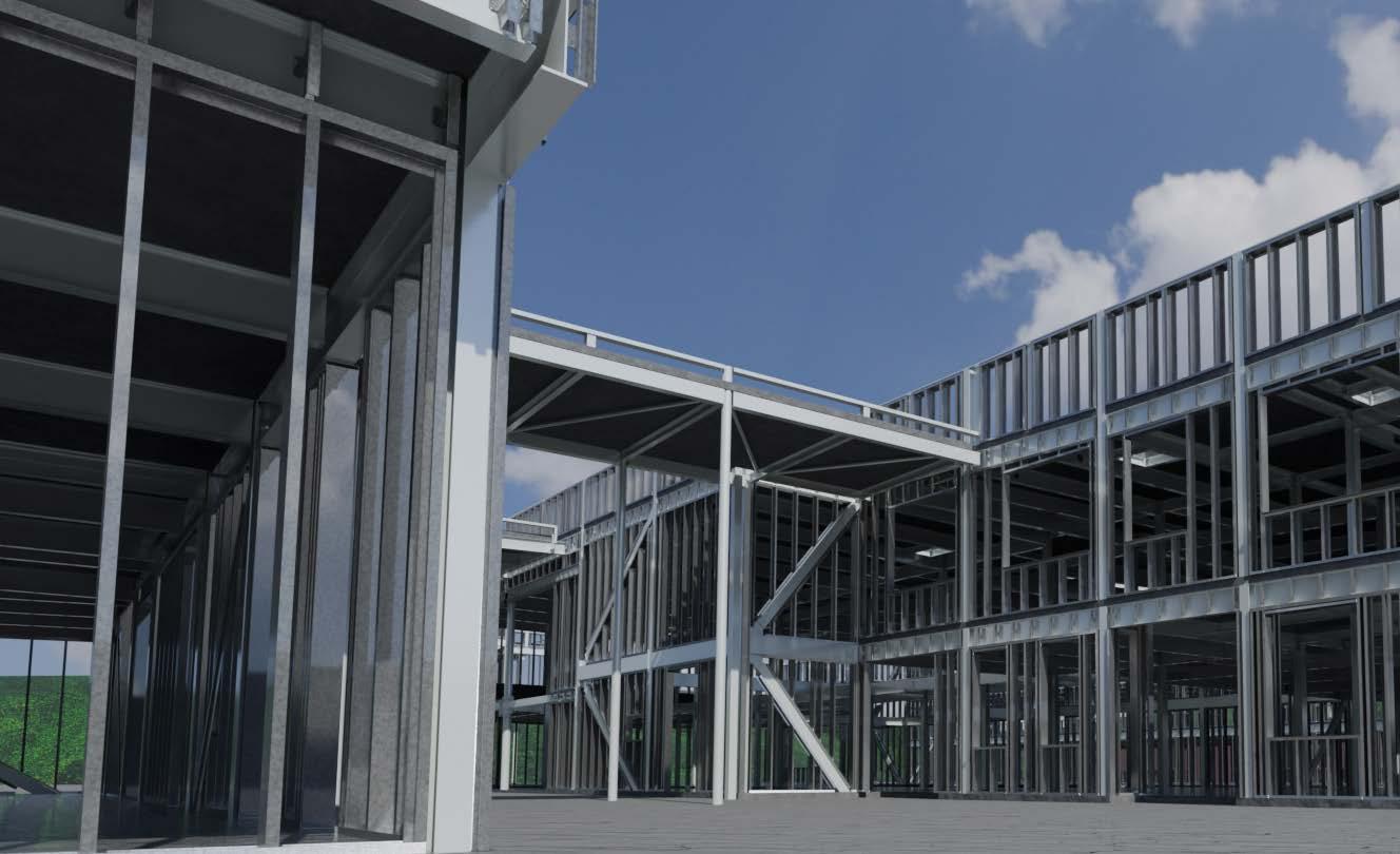 Designed to support shorter construction programmes compared to traditional hot-rolled or concrete frame methods.