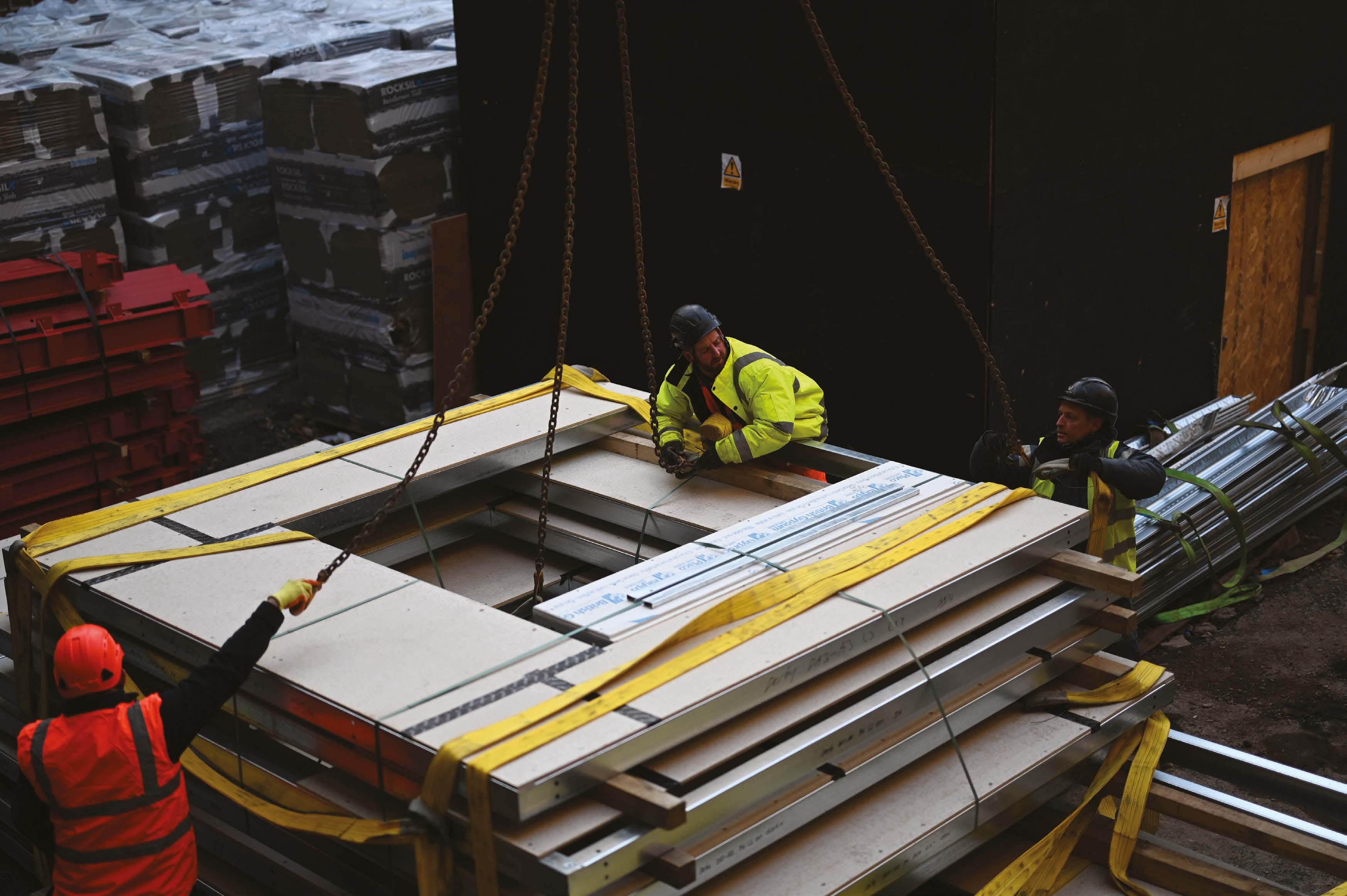 Optimised labour - a typical five-person crew assembles efficiently on site, keeping costs low.