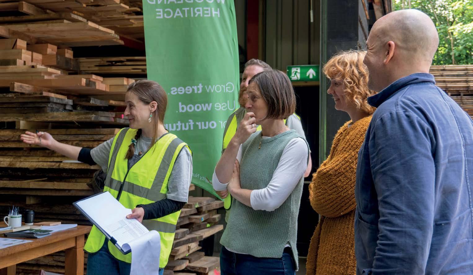 Two Forestry Commission England projects are highlighted. Building from England’s Woodlands is described as a threeyear £300k project designed to boost the use of English hardwood forest products across the built environment, improving the carbon