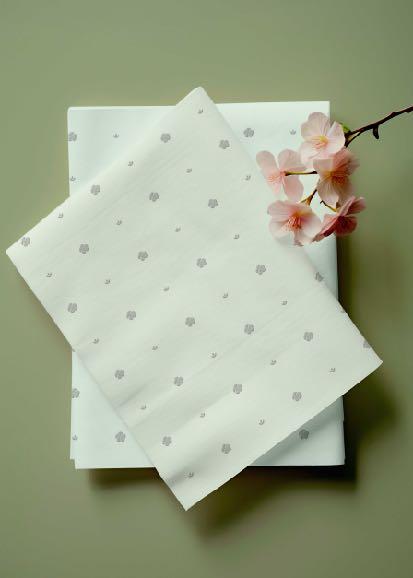 White tissue paper with a delicate green flower pattern for brand product wrapping. Complements the brand identity and creates a cohesive presentation.