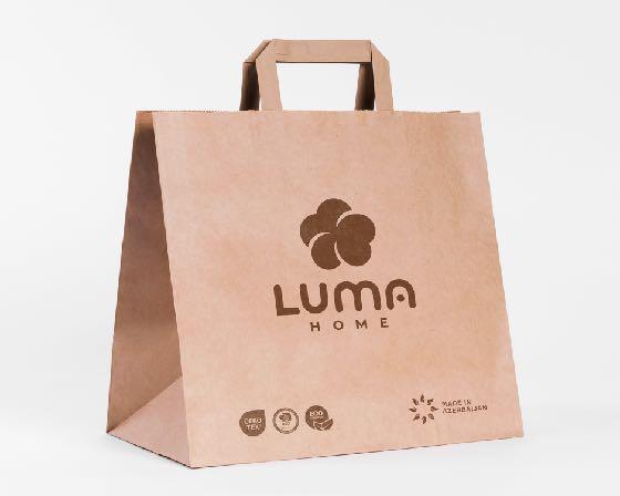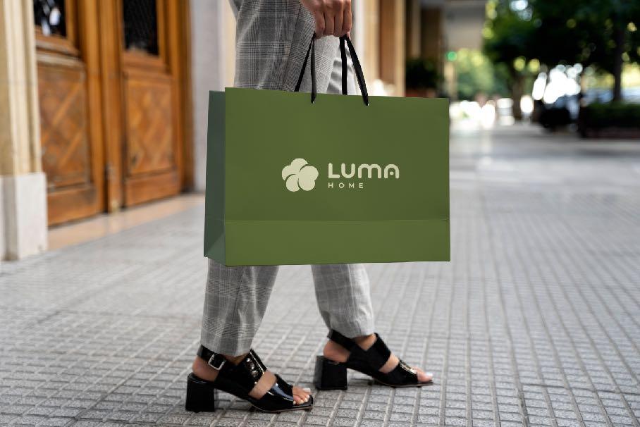 Kraft paper bag made from sturdy eco-friendly material with the Luma Home brand logo. Minimalist design emphasizes the brand's natural aesthetic and environmental commitment.