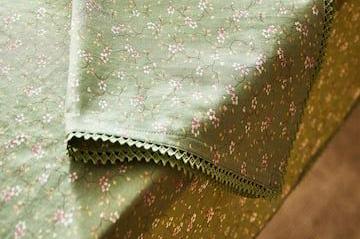 Green grosgrain ribbon with flower pattern for various packaging needs. Enhances the brand's natural aesthetic and adds an elegant finishing touch.