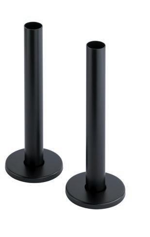 Image right: Textured Anthracite TOWER TRV Valves with Matching Pipe Covers & Shrouds
