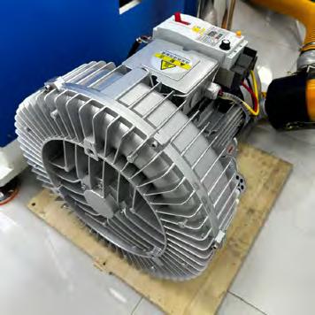 The machine is equipped with two 7.5kW vacuum pumps with air cooling. Each pump has a capacity of 550m³ per hour, providing high absorption even for small panels, enhanced with pneumatic rollers pressing the panels.