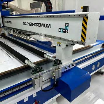 Axis movement occurs via linear guides (30mm and 25mm) and a rack-and-pin ion system from the highly reputable HIWIN brand from Taiwan. This is proven to be the best and most efficient movement system in most CNC machines, ensuring smooth operation, low noise levels, and significantly reducing additional loads, thereby increasing durability and longevity.