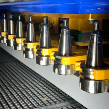 The automatic tool change system enables fast and secure tool switching without manual intervention. The magazine is mounted directly on the gantry, significantly reducing tool change time and eliminating the need for the machine to move to the end of the worktable. This system provides higher productivity, consistent precision, and maximum dynamics during complex multi-tool programs.