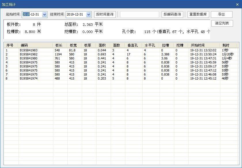 The number of boards, the number of areas. The number of grooves, the number of grooves, the number of holes, and the related processed information can also be queried by time and plate code.