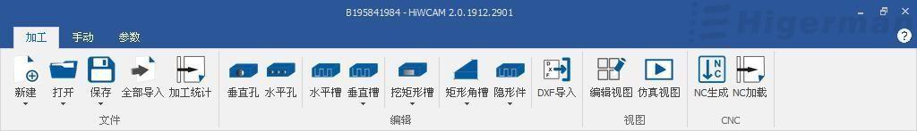 ● Menu bar: Located at the top left of the interface, it mainly provides CAM tools classified and used, including processing, manual, and parameters;