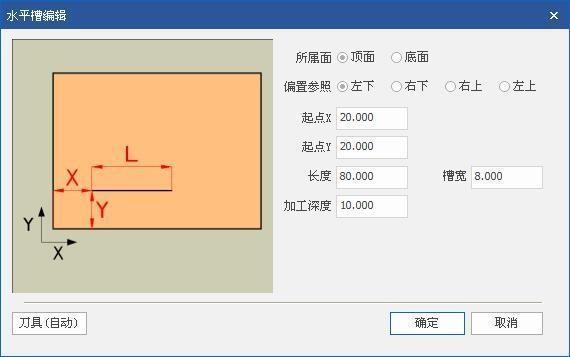 Slot width: the width of the slot, fill in a positive number. Processing depth: the depth of the groove, fill in a positive number.