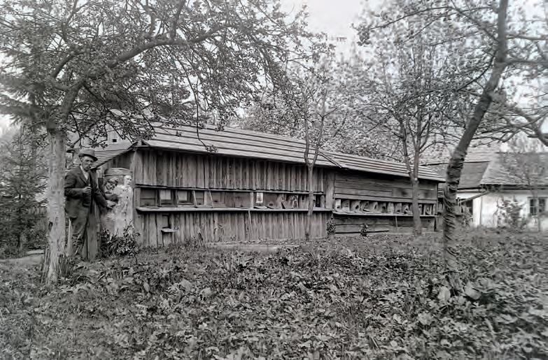Včelař před včelími úly / Imker vor den Bienenstöcken