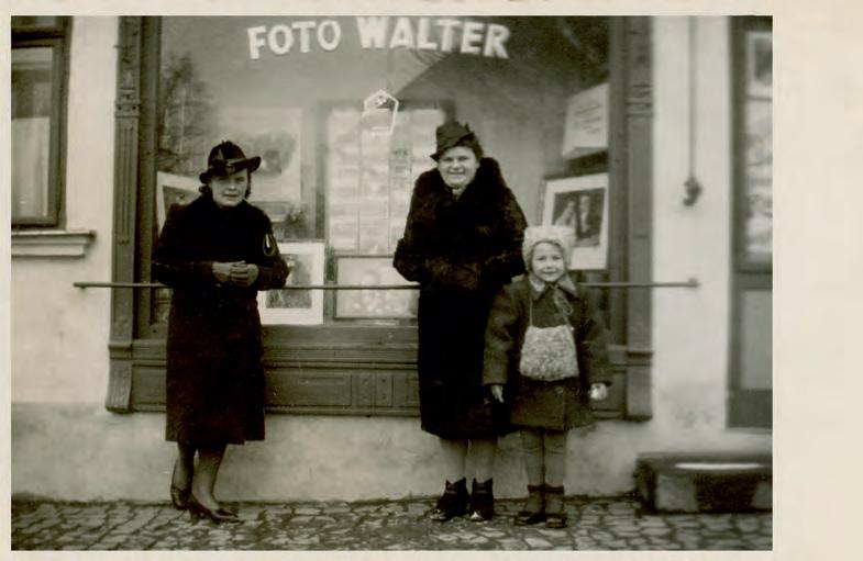 Fotografova vnučka Eva před ateliérem / Die Enkelin des Fotografen, Eva, vor dem Fotostudio