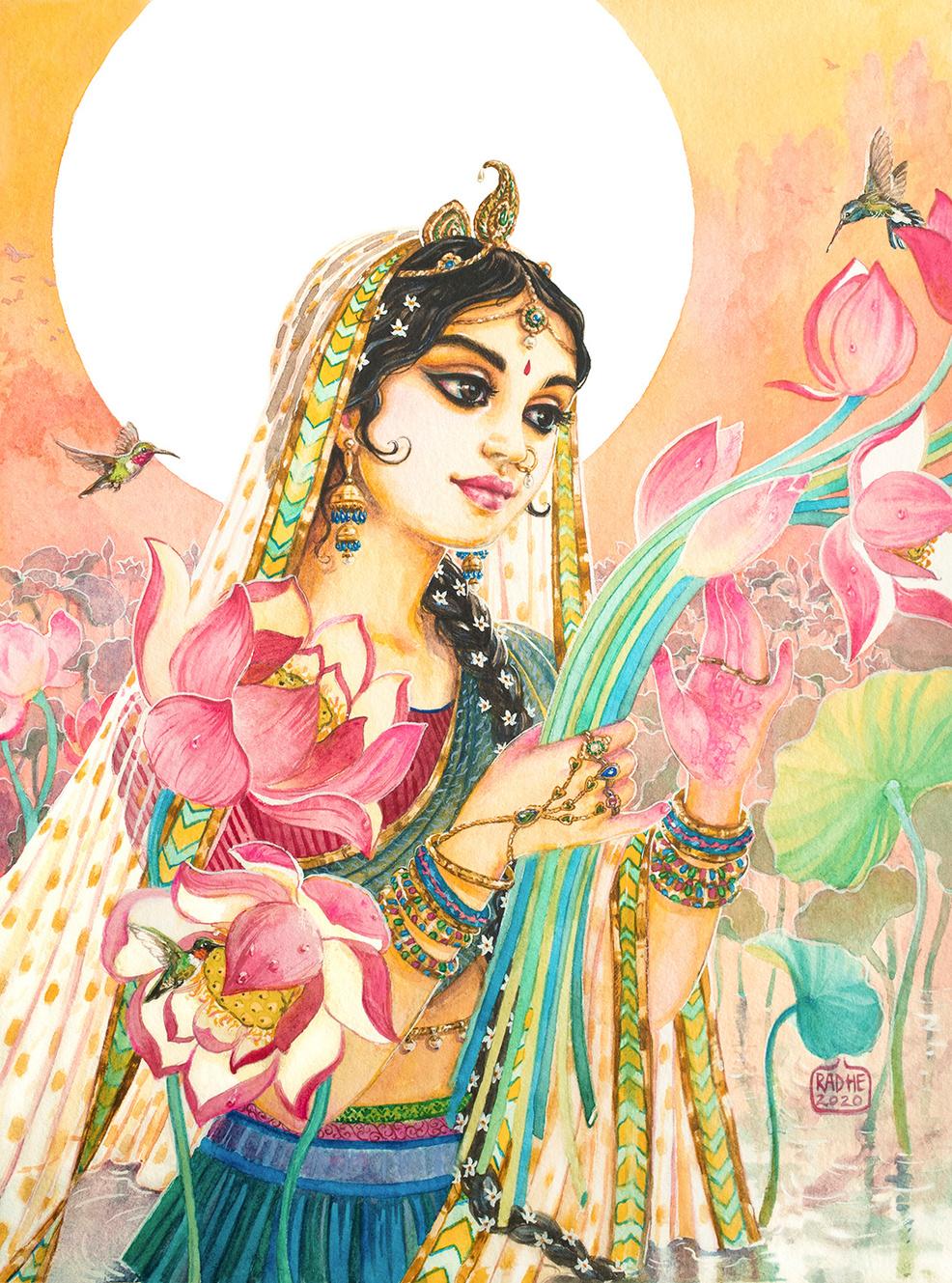 Srimati Radharani has twenty-five transcendental qualities, and She can control even Krsna by them. Her transcendental qualities are as follows: