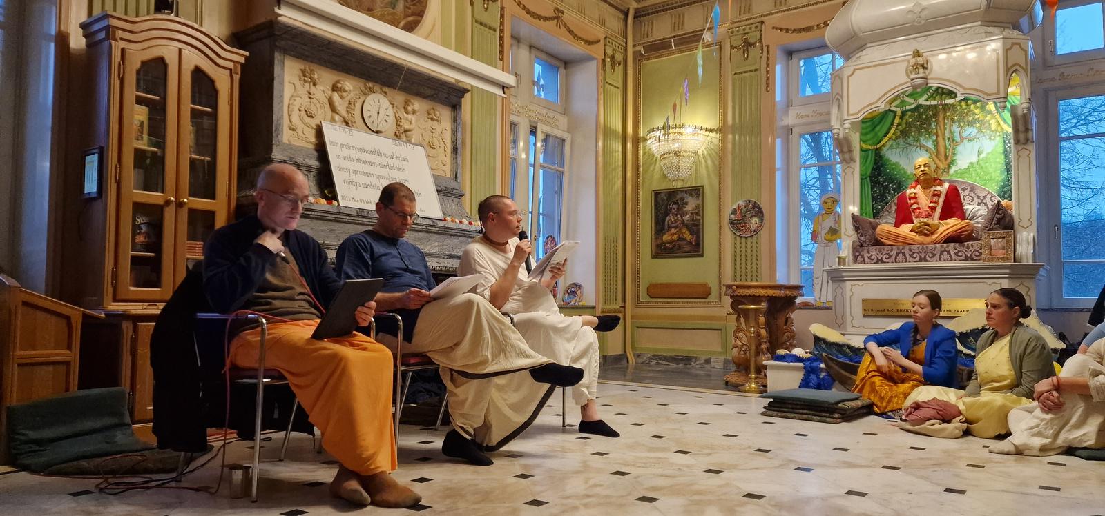We beginnen met een eerbetoon aan onze vereerde spirituele meester, Kadamba Kanana Swami, die onlangs van deze wereld is heengegaan. Hij was een dierbare dienaar van Srila Prabhupada's missie en zijn dienst houding was bewonderenswaardig. Zijn bijdragen ter ondersteuning van Radhadesh zullen altijd herinnerd worden, en we bidden voor een druppel van zijn toewijding om Sri Sri Radha Gopinatha en Srila Prabhupada te dienen Wij bieden hem ons respect en onze dankbaarheid aan.