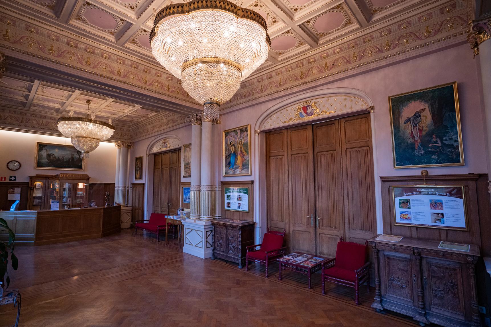 Na de inkomhal en de trap willen we ook de Tempelzaal en de twee aangrenzende kamers, de Blauwe Zaal en de Paarse Zaal, schilderen