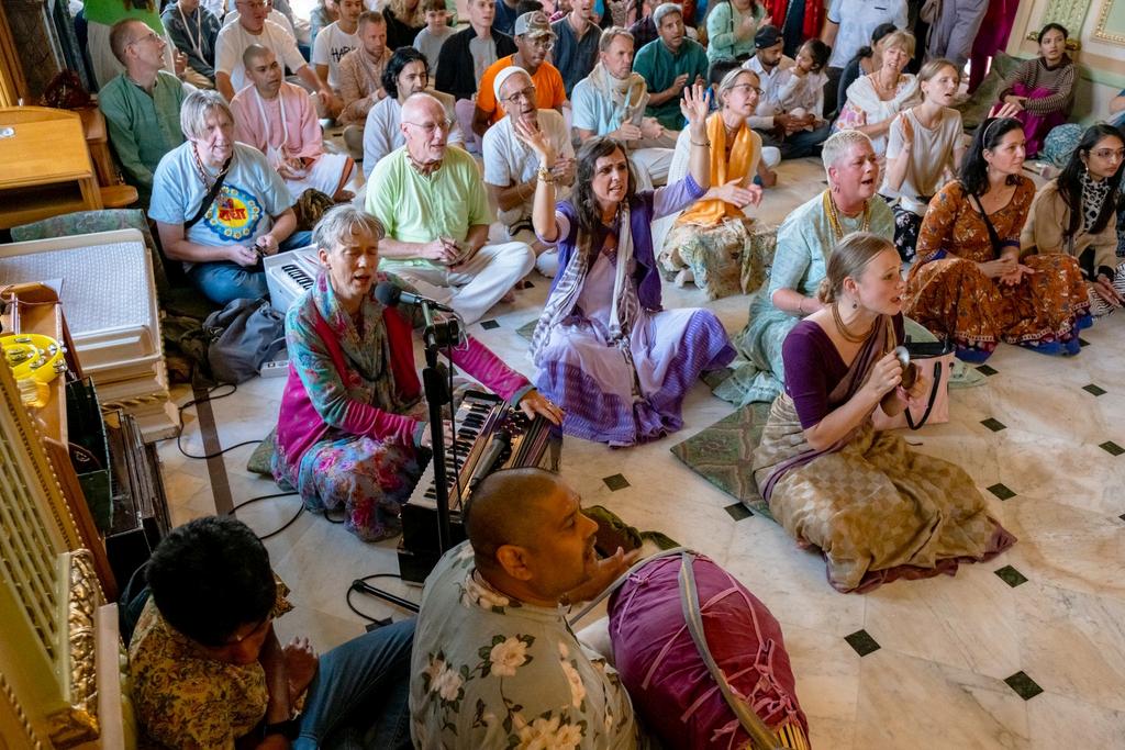 Enseigner et encourager le mouvement sankirtan, le chant en congrégation du saint nom de Dieu.