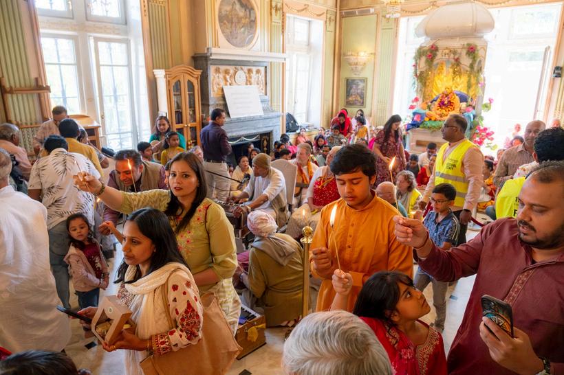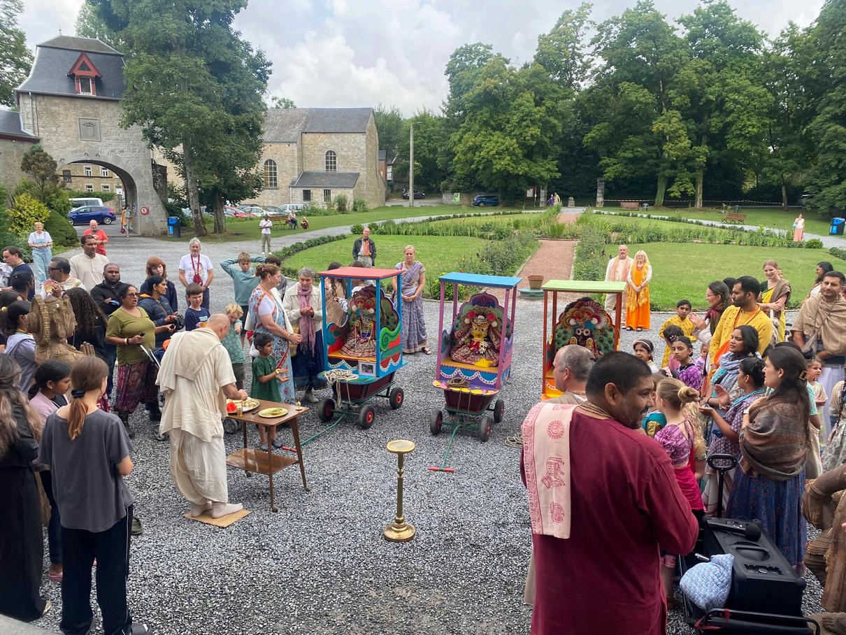 Grâce à votre dévouement, nous avons accueilli plus de 5 500 invités, touchés par la présence divine de Sri Sri Radha Gopinatha, Sri Sri Jagannatha Baladeva et Srimati Subhadra, ainsi que Sri Sri Gaura Nitai. Un grand merci à Kumar et à sa famille, à Shyamapriya et à Rasacharya pour leurs généreux dons de fleurs, ainsi qu ' aux artistes dont les prestations ont apporté tant de joie Nous sommes ravis de célébrer la Govardhana Puja et Diwali le 18 octobre. Pour nous aider à organiser vos fêtes, inscrivez-vous à l'avance sur diwalidurbuy.be. Le programme sera bientôt disponible