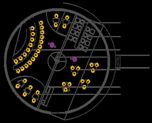 Entire plan has circular structures.Advantages of such structures is they have less surface area to come in contact with adverse weather conditions, which improves the overall durability and energy efficiency of the space.