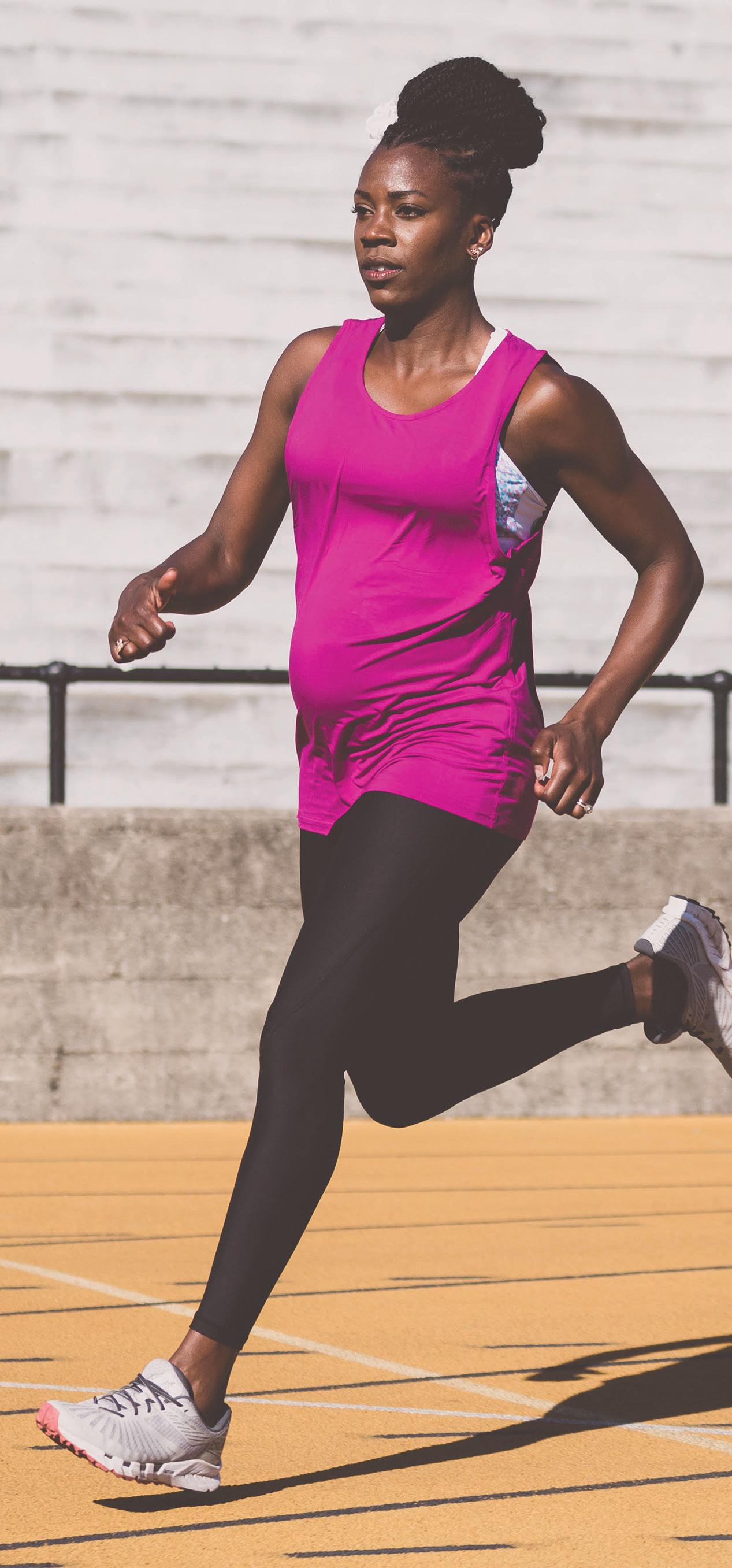 FOR WELL OVER A DECADE, U.S. 800-meter runner Alysia Montaño has repeatedly established her rightful place in the pantheon of elite athletes. Sporting her signature flower symbolizing strength and femininity, the track and field Olympian has garnered seven USA outdoor championships and has achieved the status of American record holder twice. These feats are impressive in and of themselves, but nothing amazed fans and spectators more than when Alysia competed professionally while eight months pregnant with her daughter in 2014, and while five months pregnant with her son in 2017. We caught up with “the pregnant runner” just a couple of months after she gave birth to her third child to talk about what it means to pursue both motherhood and career and what it will take for every other mom to do the same with ease.