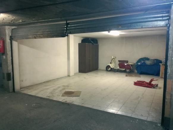 Garatge tancat per 2 cotxes amb llum, terra enrajolat i parets enguixades.