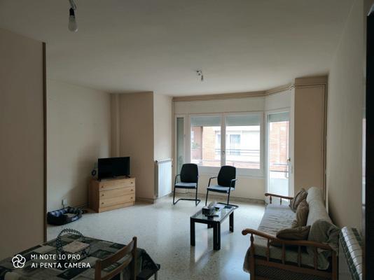 Pis de 90m2, menjador estar, cuina amb rebost, tres habitacions (dues dobles i una individual), dos banys (un complet), habitació rentadora, calefacció de gas, dos balcons, pàrquing i traster.