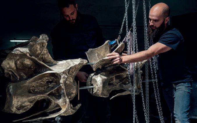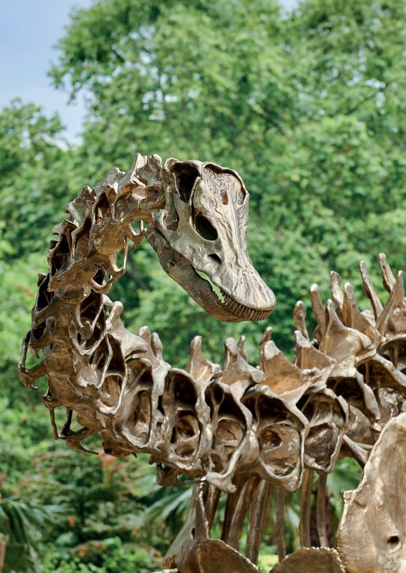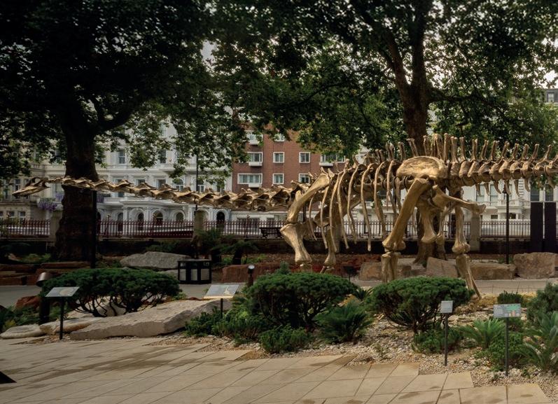 Fern, the 25-metre, self-supporting bronze cast of the famous Diplodocus specimen ‘Dippy’, now greets guests to the Natural History Museum in London as part of the new Evolution Garden. Fern was created by Factum Arte, a Madrid-based studio and interdisciplinary workshop co-founded by Adam Lowe (1972, C). Fern and the Evolution Garden are supported by the Kusuma Trust. To read the interview with Adam Lowe, turn to pp. 30–35. Fern the Diplodocus © The Trustees of the Natural History Museum, London.