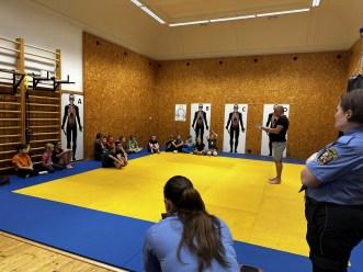 A začalo se pěkně zostra. Protože správný strážník musí být připraven na všechno, děti si hned na úvod vyzkoušely část fyzických testů, které každoročně absolvují jejich kolegové v uniformě. Člunkový běh, kliky, sedy lehy. To všechno prověřilo jejich odhodlání.