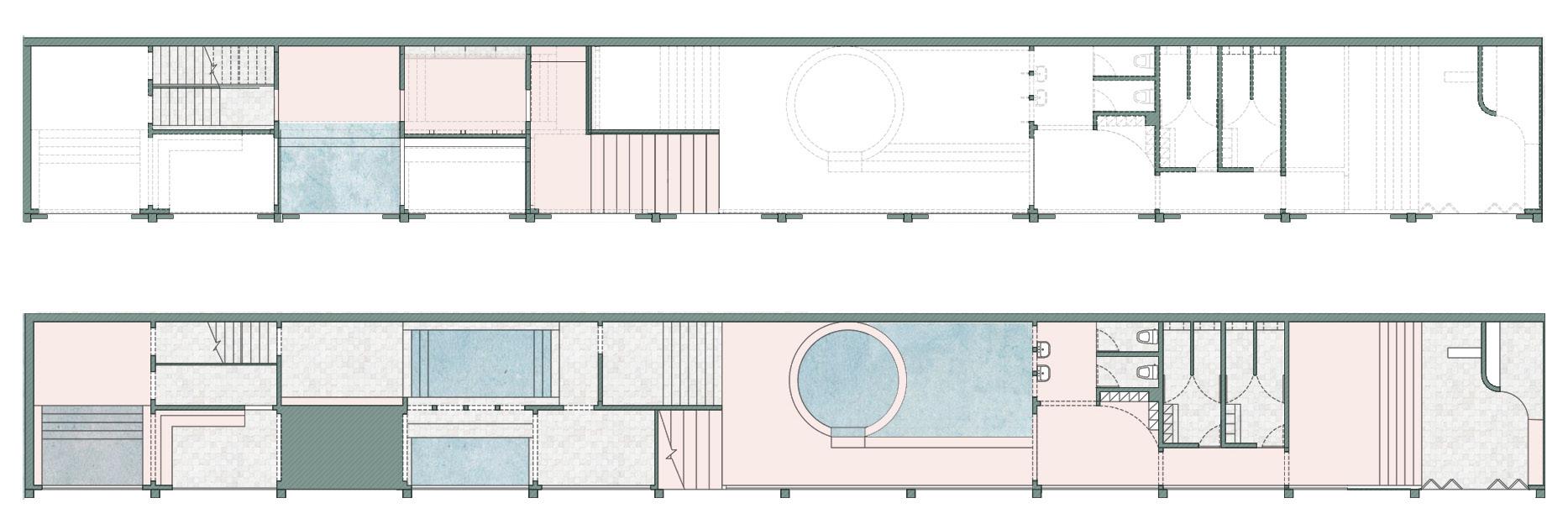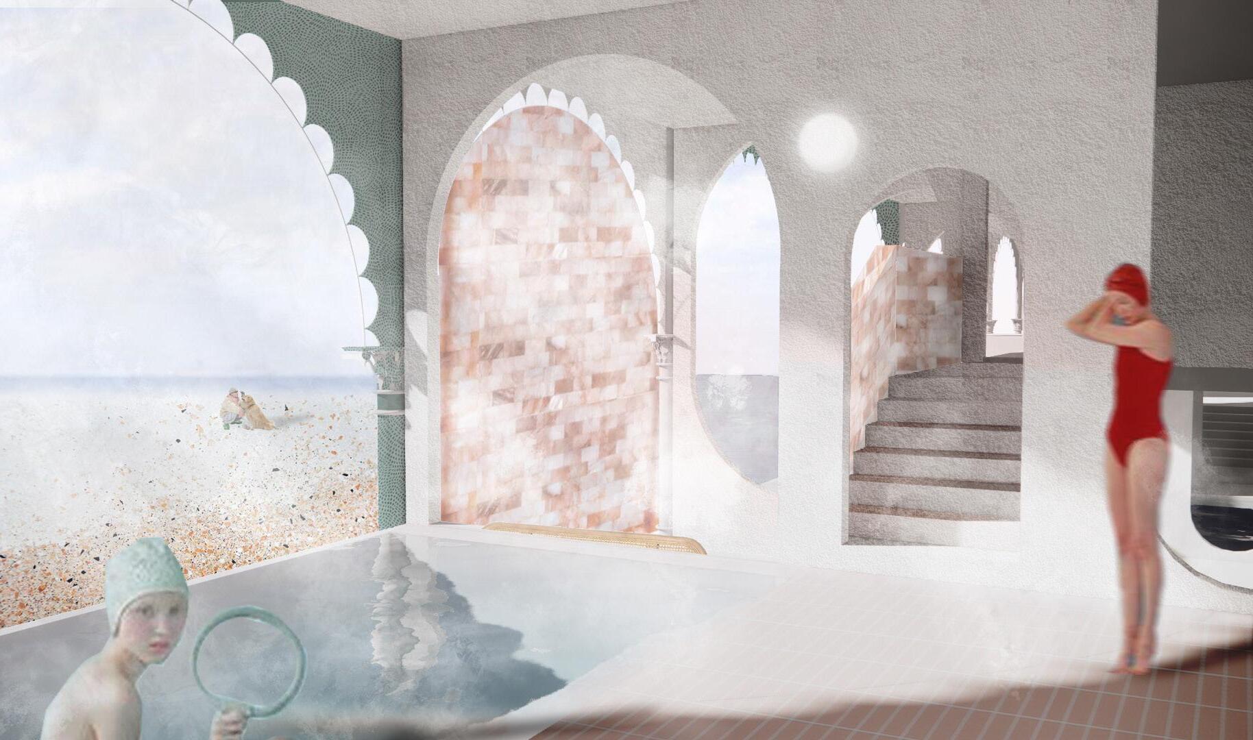 This project revitalises Madeira Terrace in Brighton—an iconic seafront walkway facing the ocean and backed by cliffs—by transforming a disused car park into a contemporary water therapy and fitness centre. The design breathes new life into the historic structure, weaving together heritage, materiality, and the sensory qualities of water.