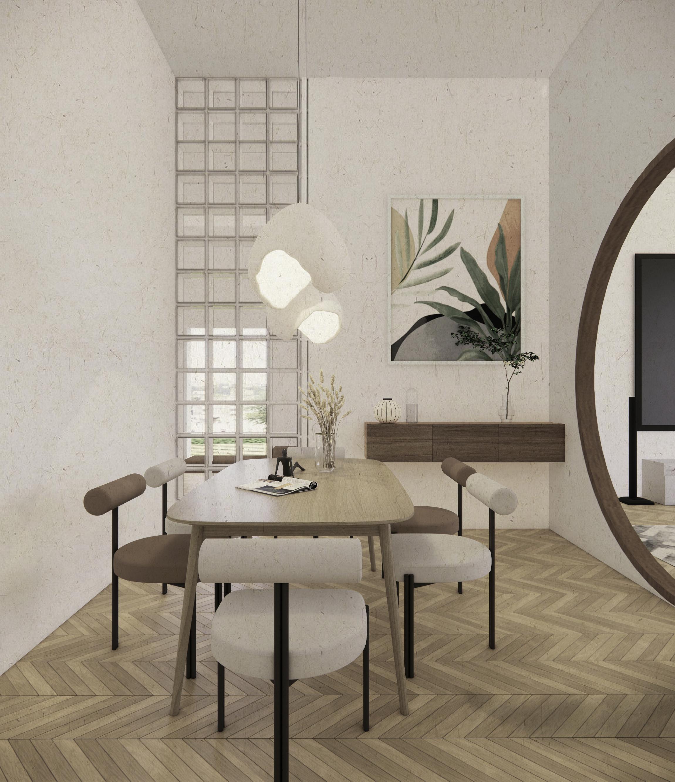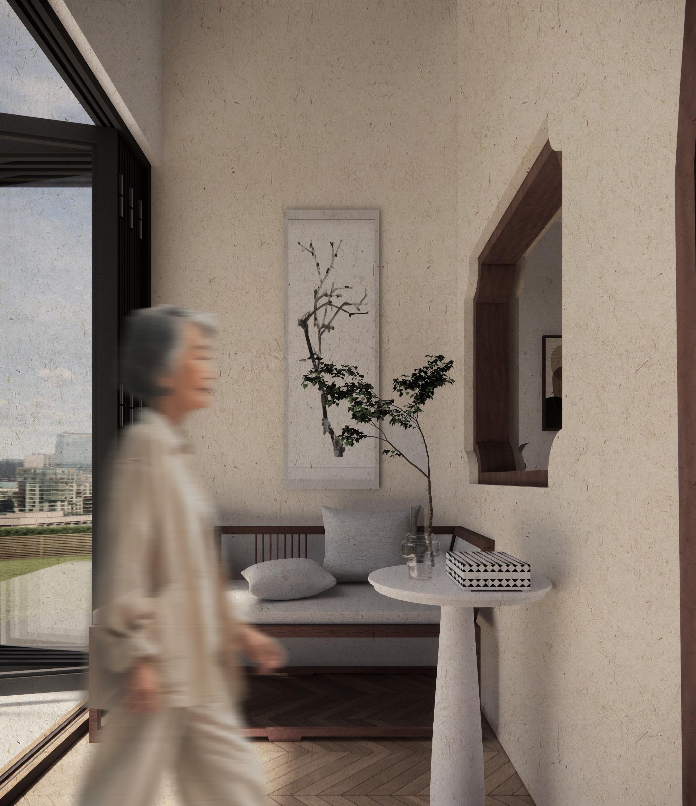 This project draws inspiration from the spatial philosophy of traditional Chinese gardens, reinterpreting ideas of layering, framing, and borrowed scenery within a domestic interior. Transparency in three directions creates fluid visual connections between rooms, offering moments of openness, pause, and quiet encounter. The design seeks to transform everyday routines into gentle rituals—like walking through a garden, one step at a time.