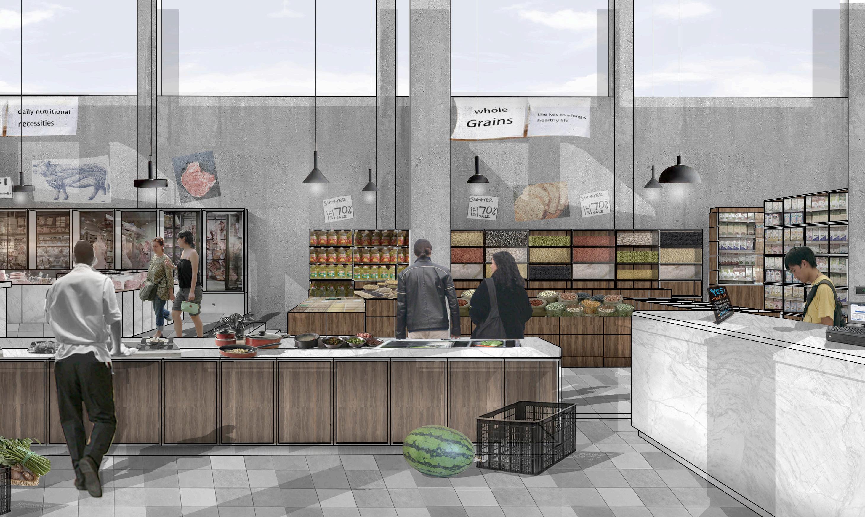 This project envisions a multifunctional food market that seamlessly integrates shopping, cooking, and dining within a community-focused environment.