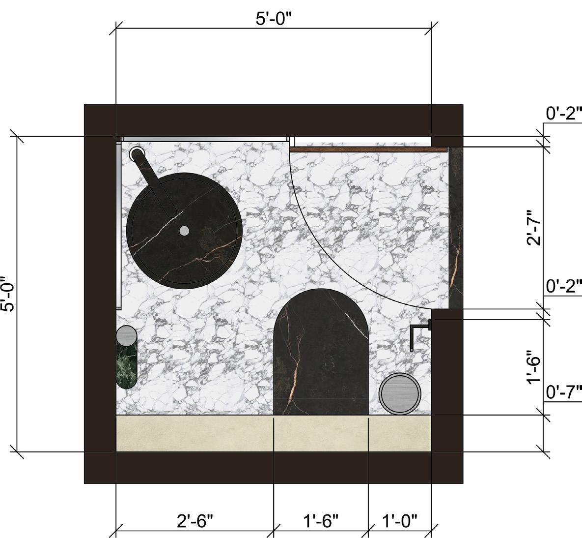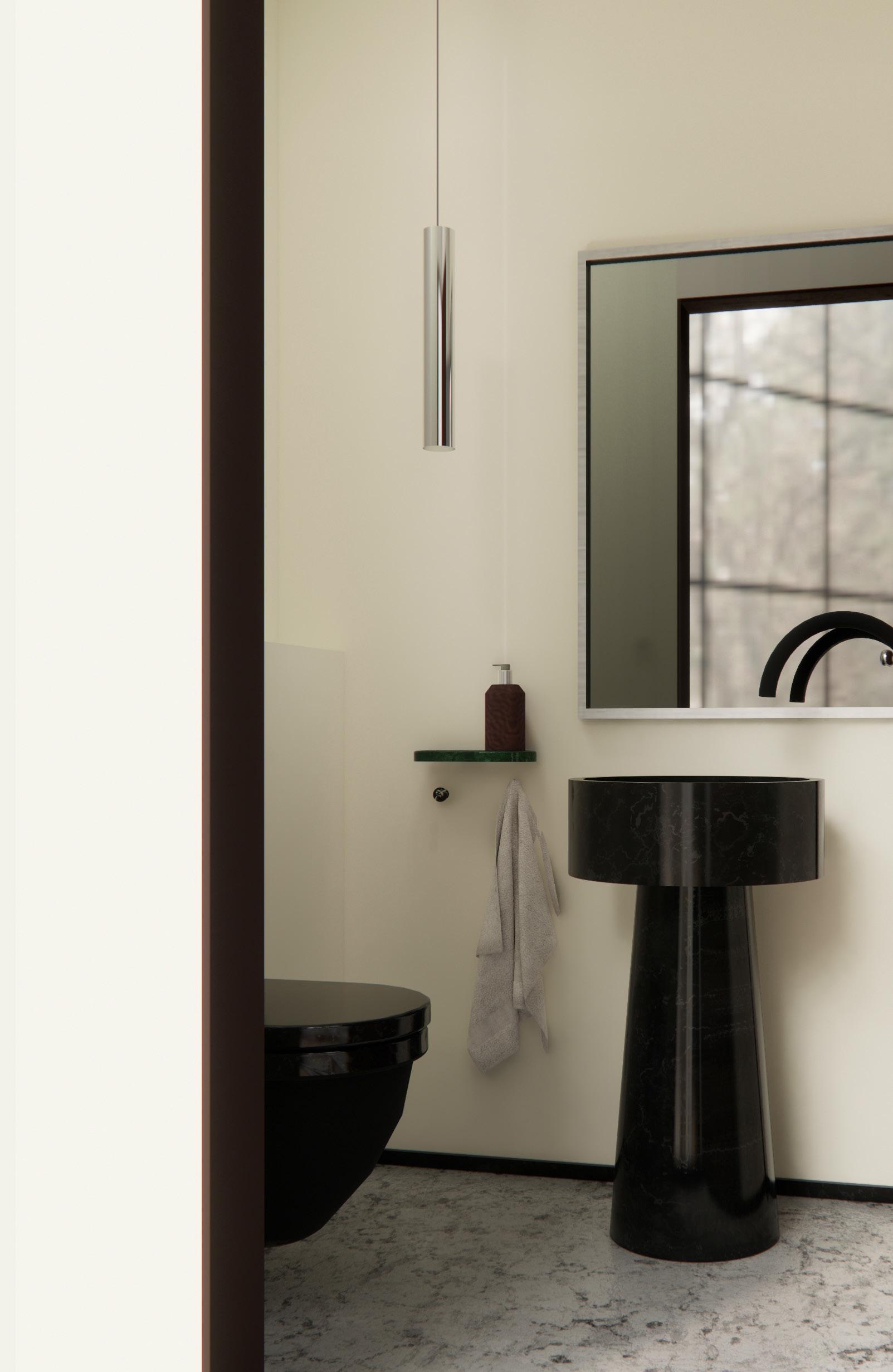 This conceptual powder room was designed for the final stage of an interview with a highend London studio. Merging the studio’s refined aesthetic with Berlin’s bold, rebellious spirit, the space reflects a calm sophistication with an edge — like a record or a cassette tape: elegant with attitude.