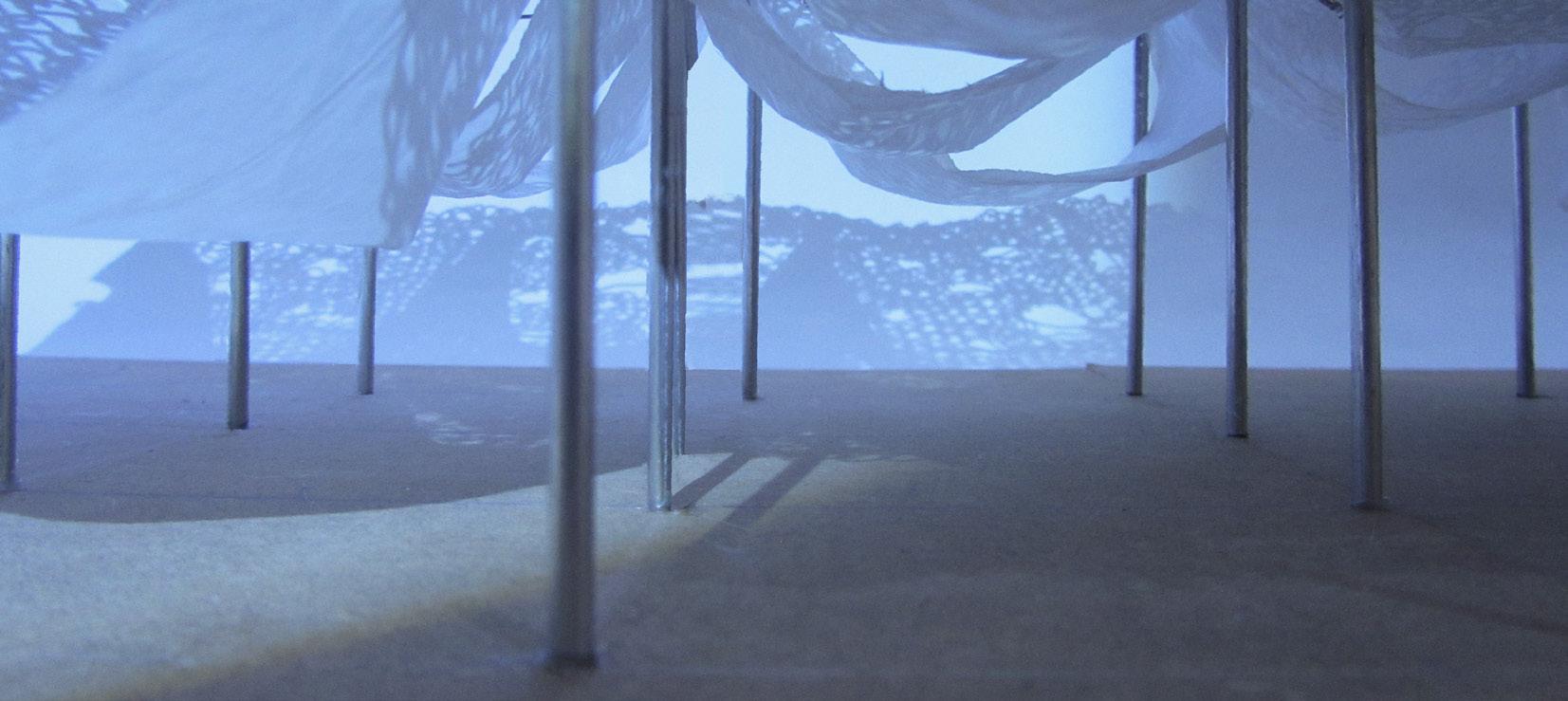 This is an experimental installation that collects rainwater and reflects the passage of time. Set in the outdoor space of a London arts college, it uses textiles, shadows, and light to create an evolving dialogue between people, environment, and space. The project explores how small, responsive structures can foster emotional and ecological connections.