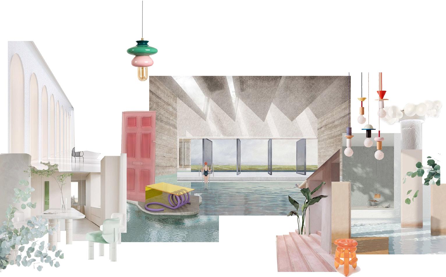 The layout is informed by a series of spatial and experiential studies. Using 1:50 physical models, I tested pool scale and zoning strategies.