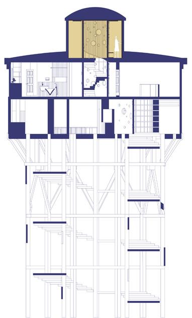 This project repurposes the water tower into a distinctive art space inspired by the night sky, offering artists a place to live, create, and exhibit their work.
