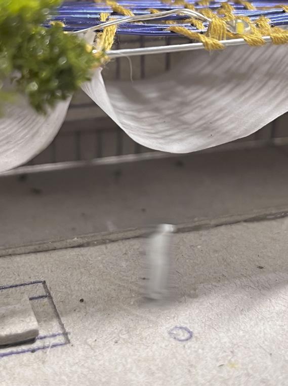 I started by mapping the space with threads—testing different line directions, densities, and how they interact with light and movement.