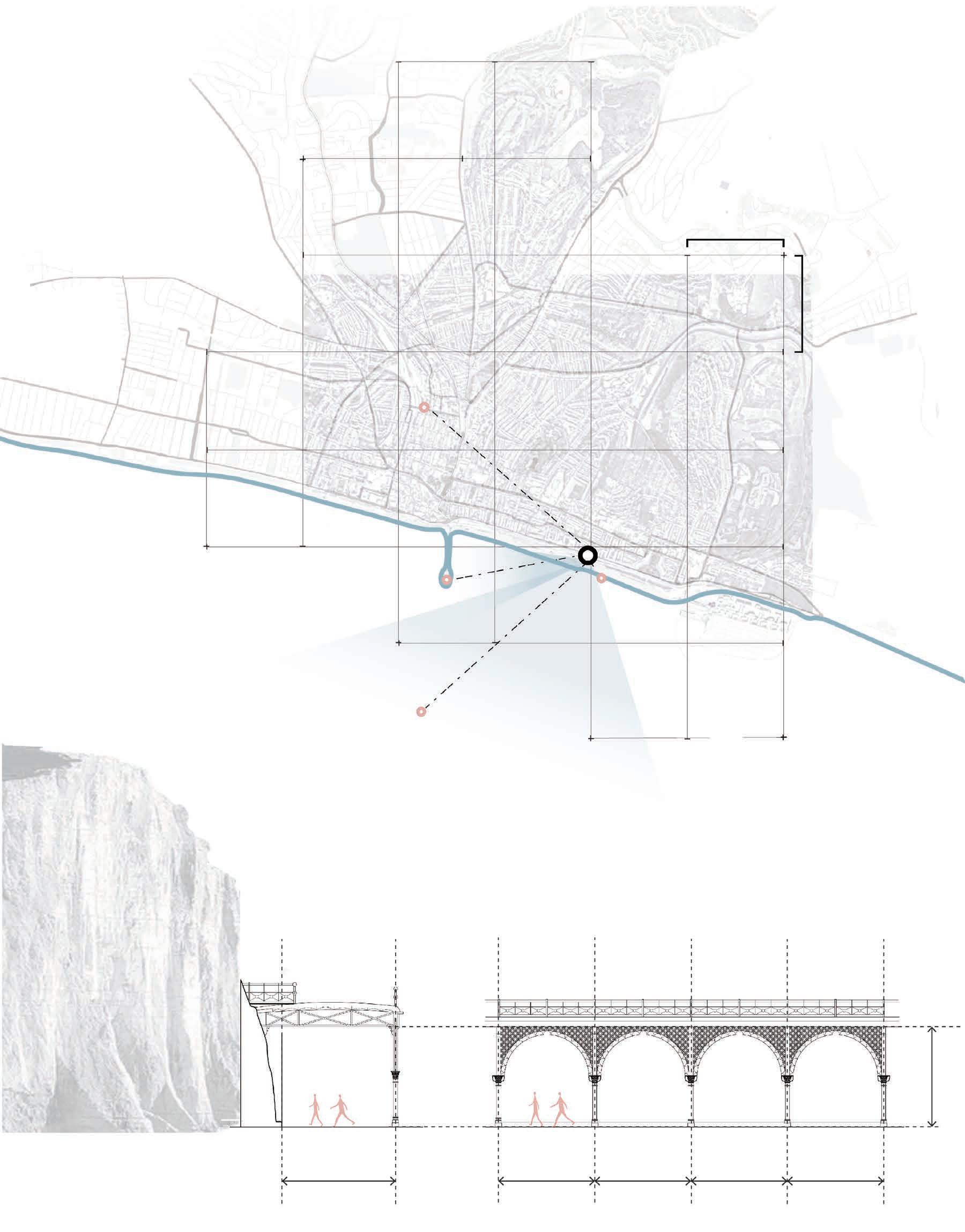 This project is located at Madeira Terrace in Brighton, a pedestrian walkway facing the sea and backed by a cliff. Originally a car park, the project aims to revitalize this historic space by renovating it with commercial functions, preserving its elegant design and color scheme.