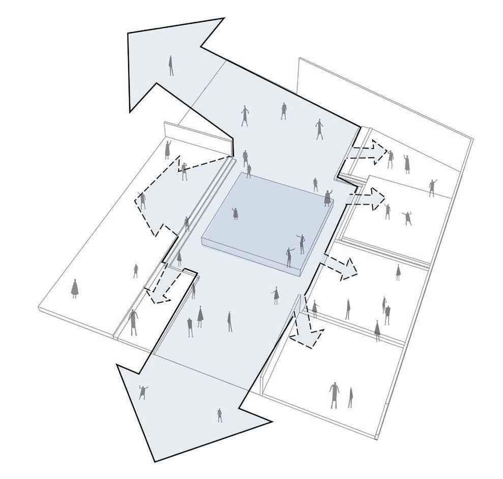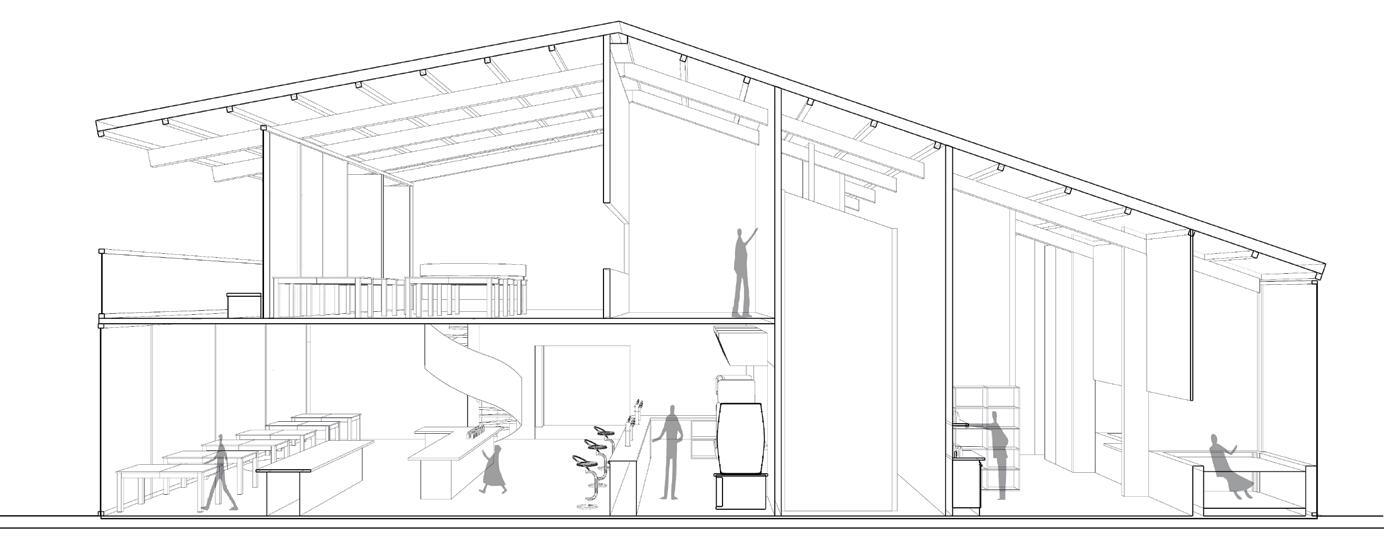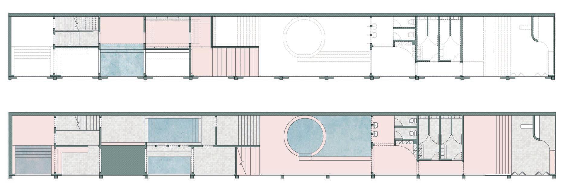 This space blends living and creative functions. Instead of fully enclosed rooms, it features open areas with subtle gaps, allowing light to flow and fostering connection. These openings encourage artistic exchange, creating a dynamic environment where ideas can move freely, even as each artist retains their privacy. The space is flexible, adaptable to both rest and creativity, reflecting the collaborative nature of artistic life.