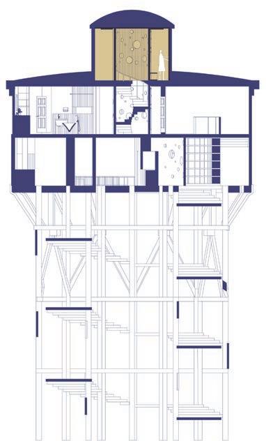 This project repurposes the water tower into a distinctive art space inspired by the night sky, offering artists a place to live, create, and exhibit their work.