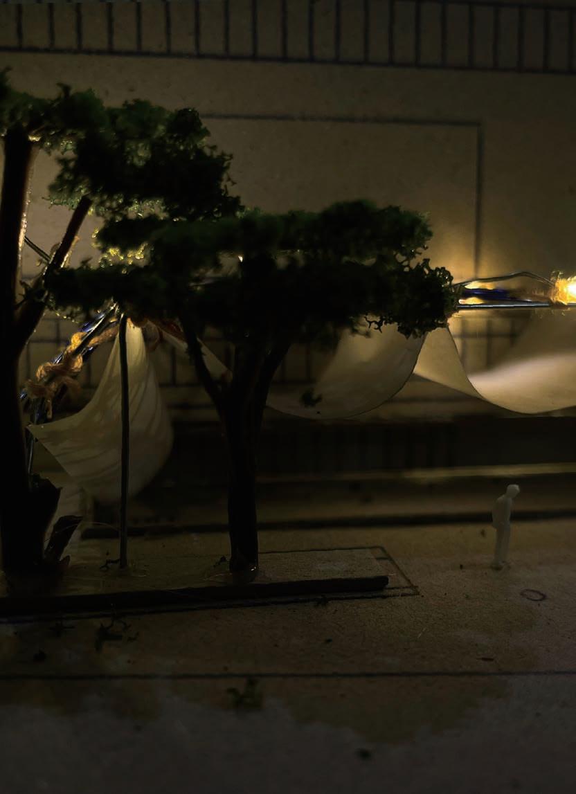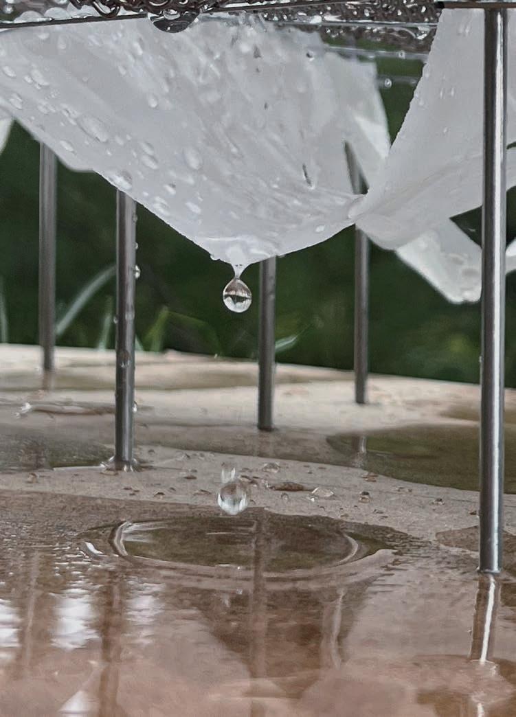 This project explores the quality of time through an experimental rain collector installation, addressing modern water pollution and the textile industry's impact. Through a series of handmade models, this project explores the concept of “a leaky space”—a porous environment where rain, light, and wind interact with materials to shape ever-changing spatial conditions. This approach fosters an ecological conversation, emphasizing the dynamic relationship between space, time, and the natural environment.