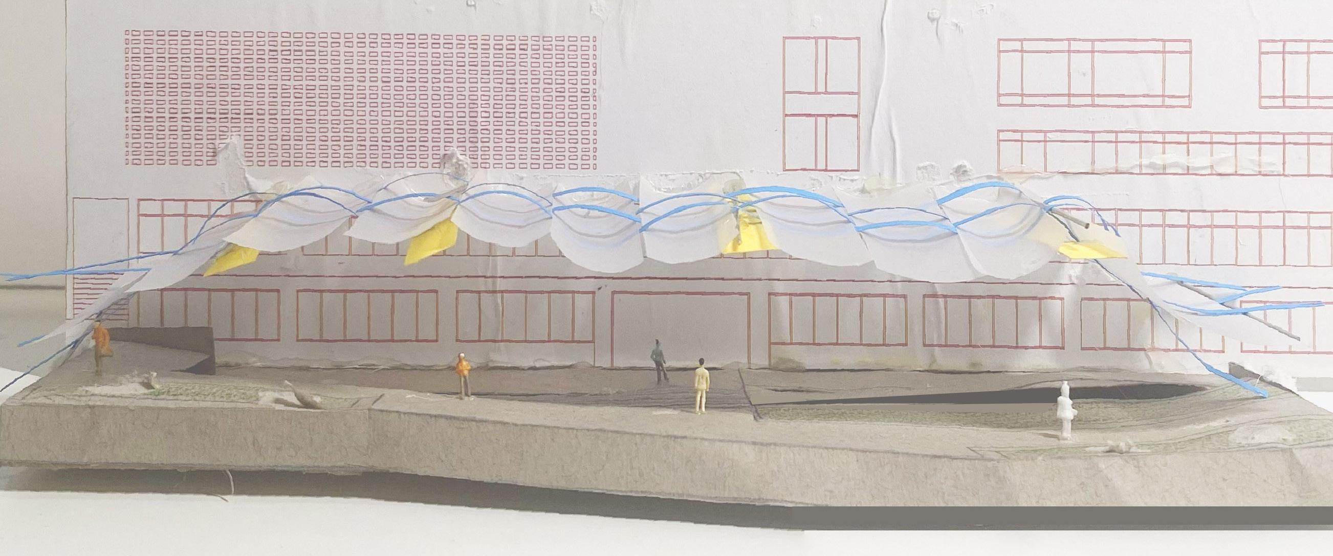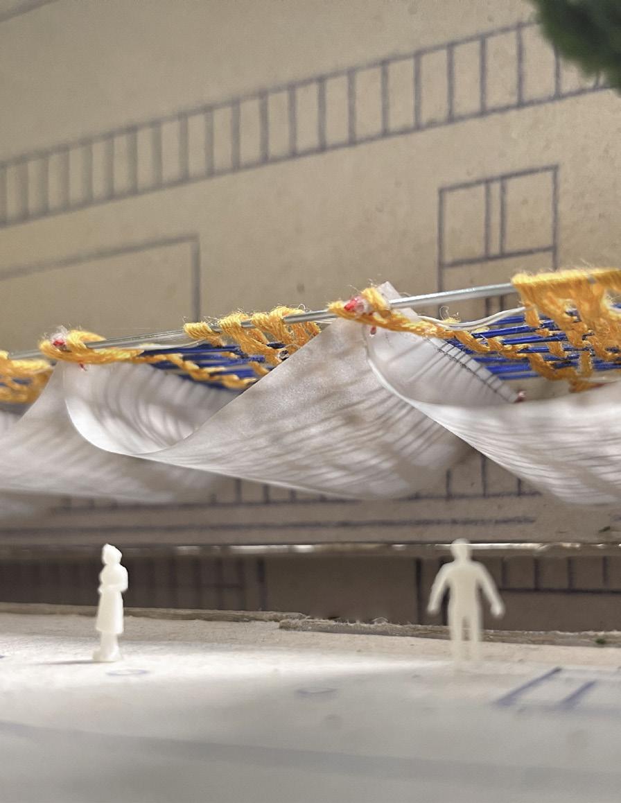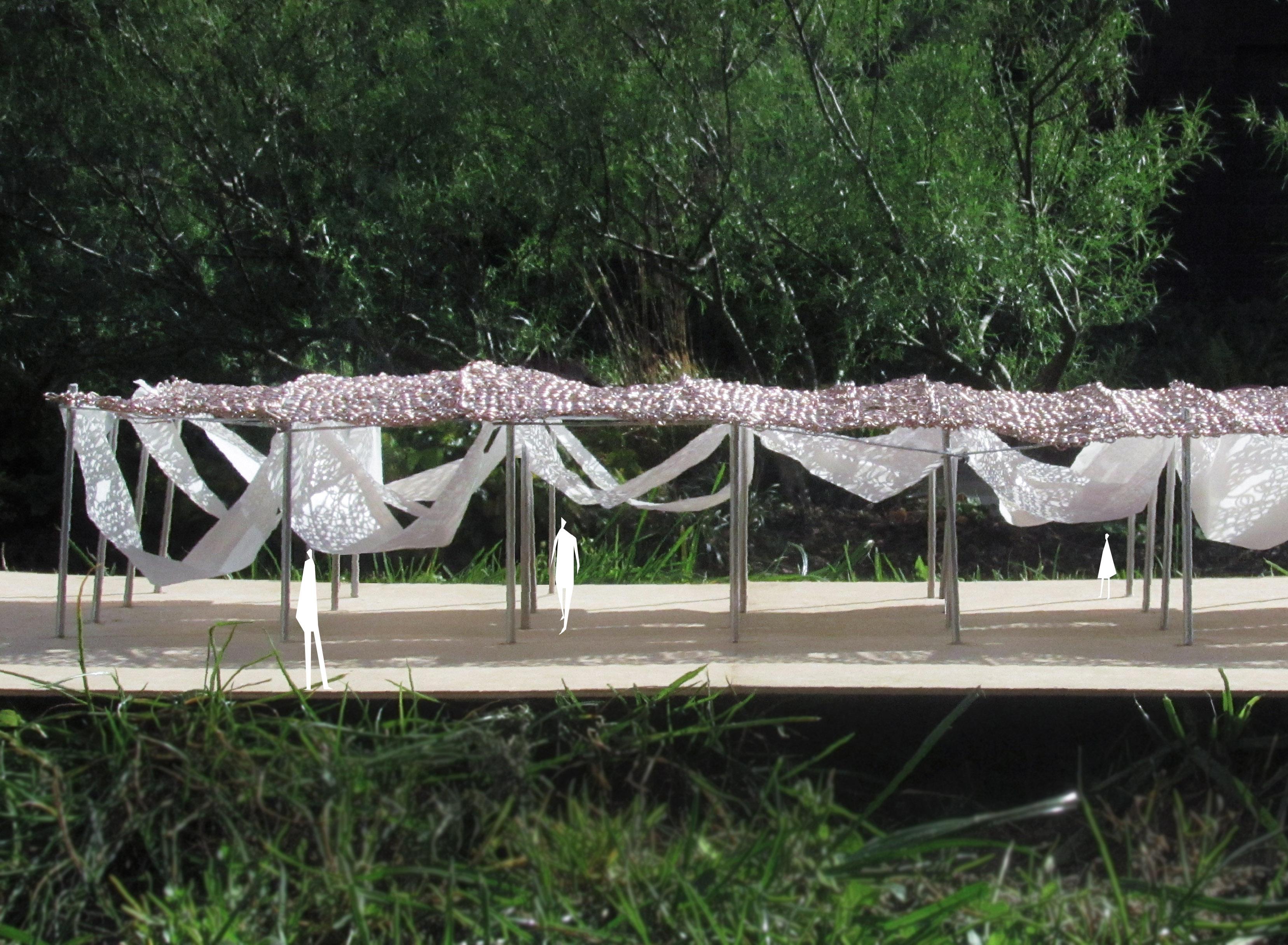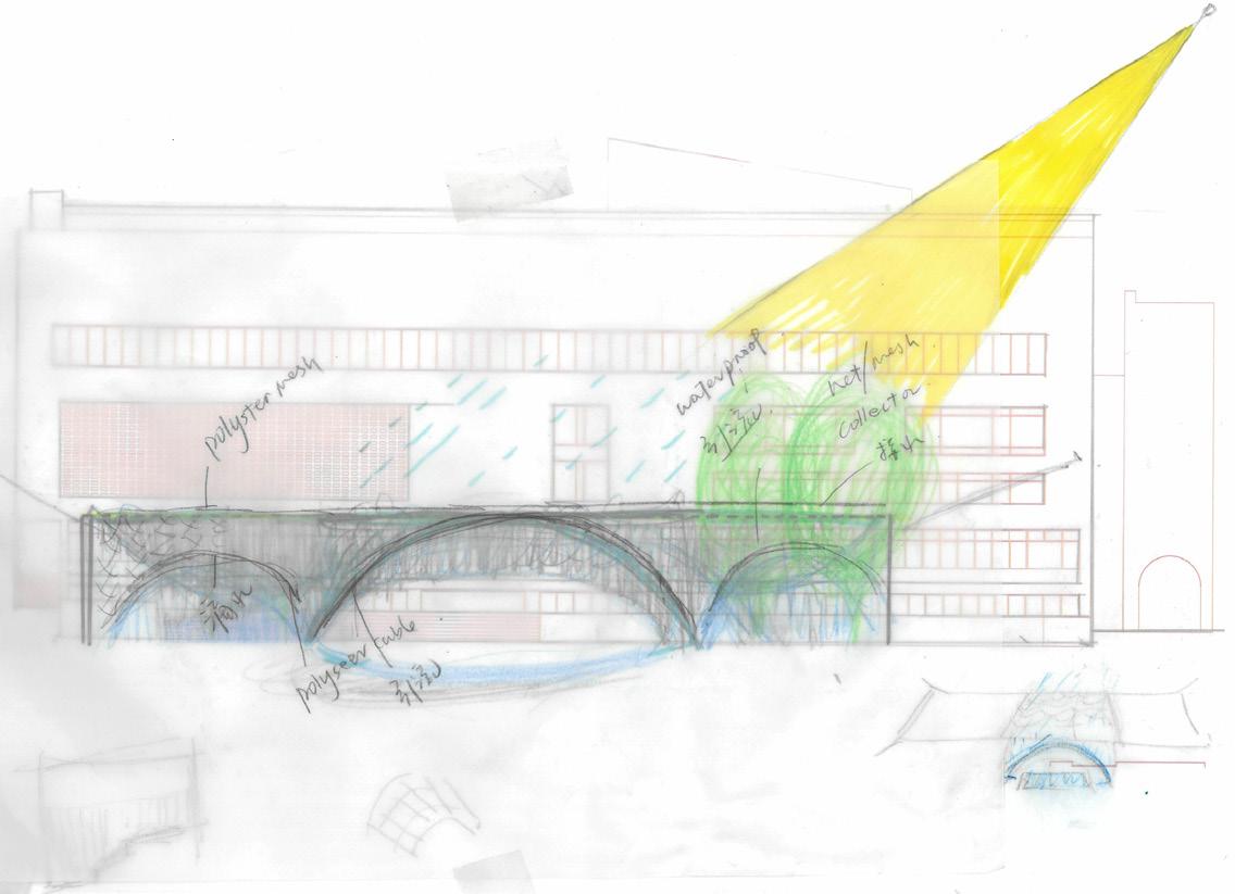 This led to the creation of a textilebased rainwater collector — an experimental space that highlights natural forces.