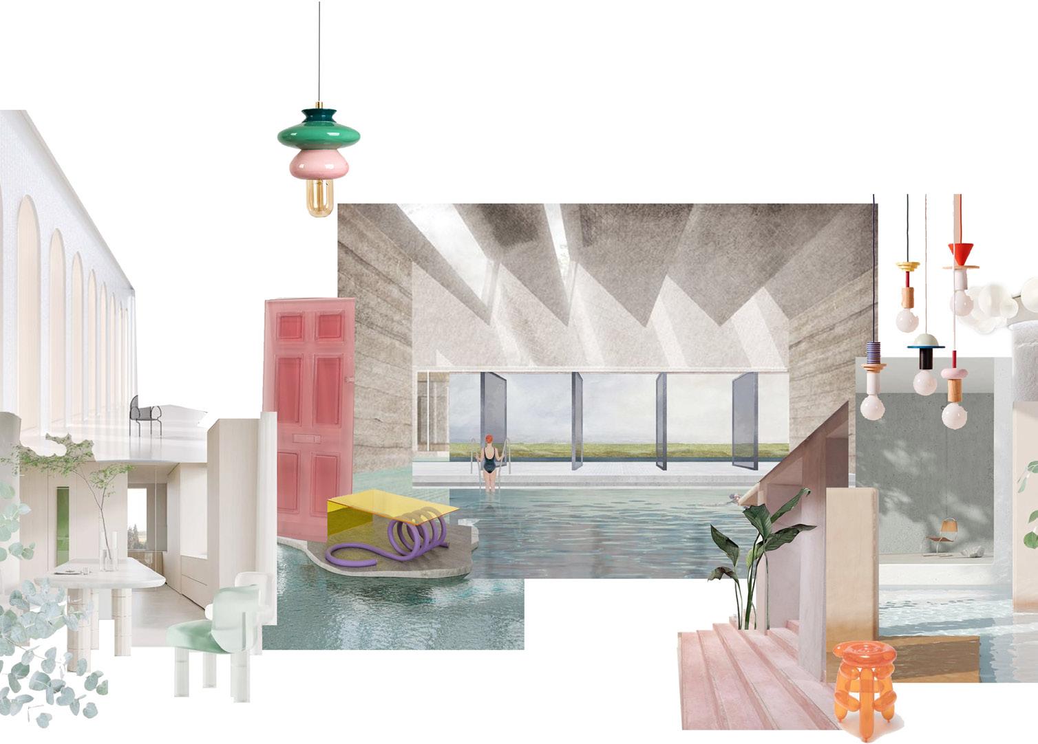 The layout is informed by a series of spatial and experiential studies. Using 1:50 physical models, I tested pool scale and zoning strategies.