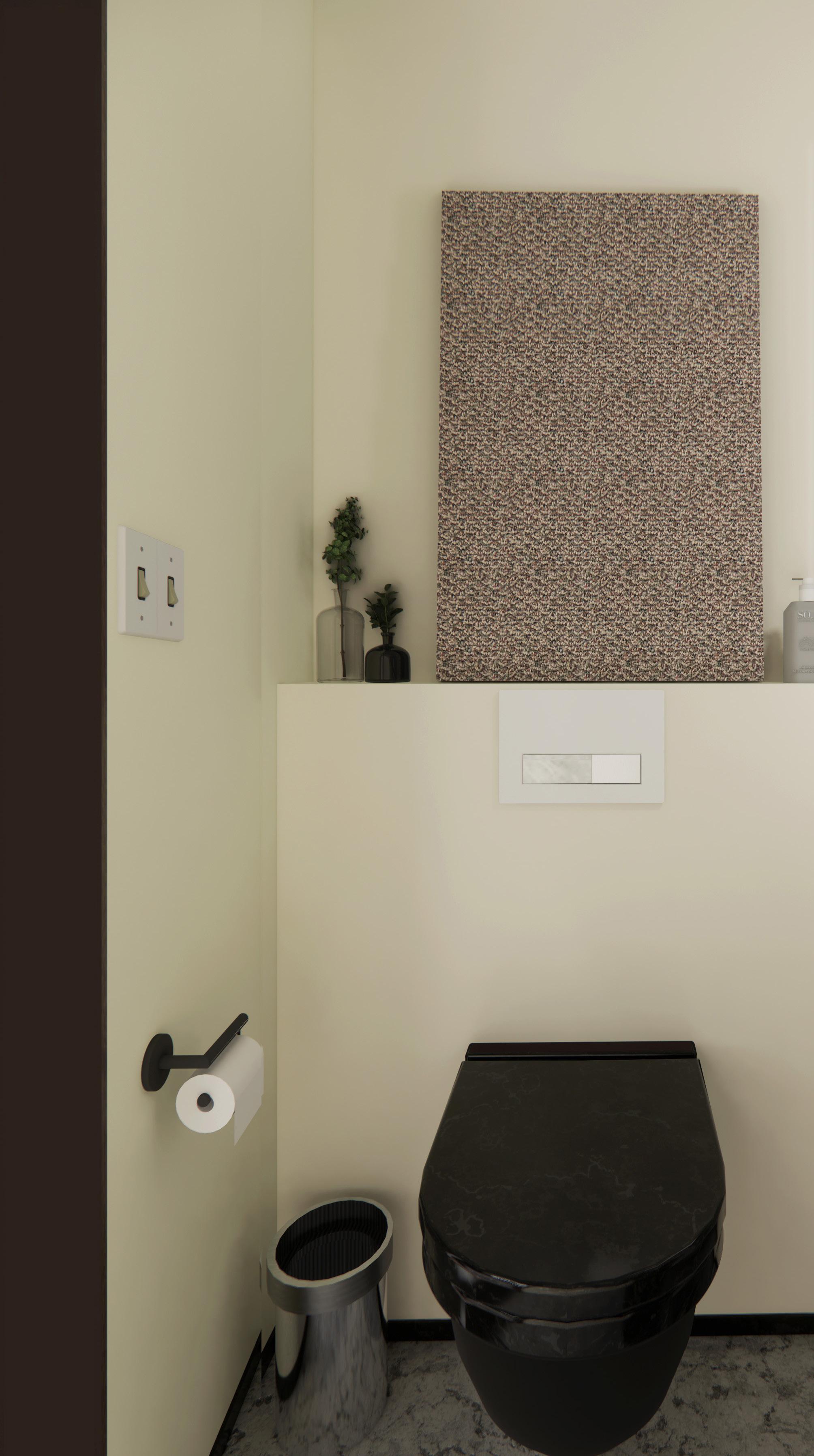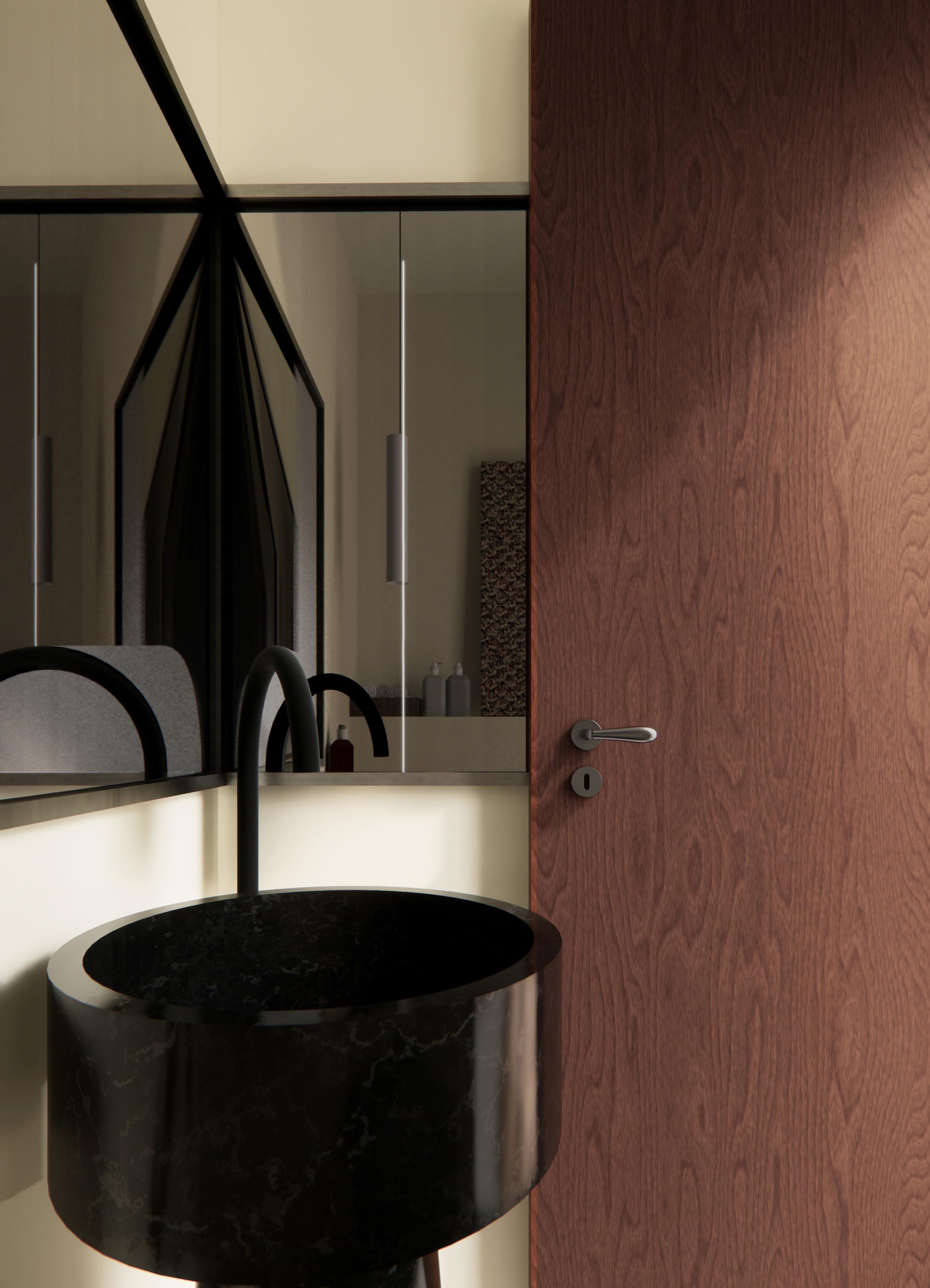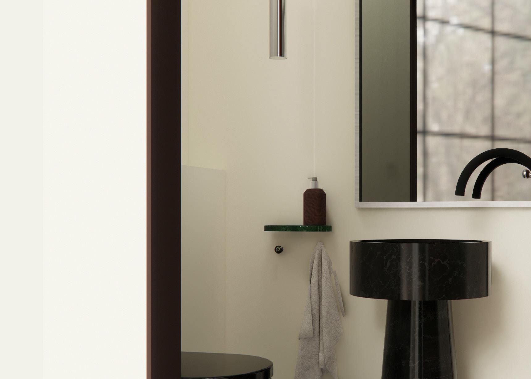 This conceptual powder room was designed for the final stage of an interview with a high-end London studio. Merging the studio’s refined aesthetic with Berlin’s bold, rebellious spirit, the space reflects a calm sophistication with an edge — like a record or a cassette tape: elegant with attitude.