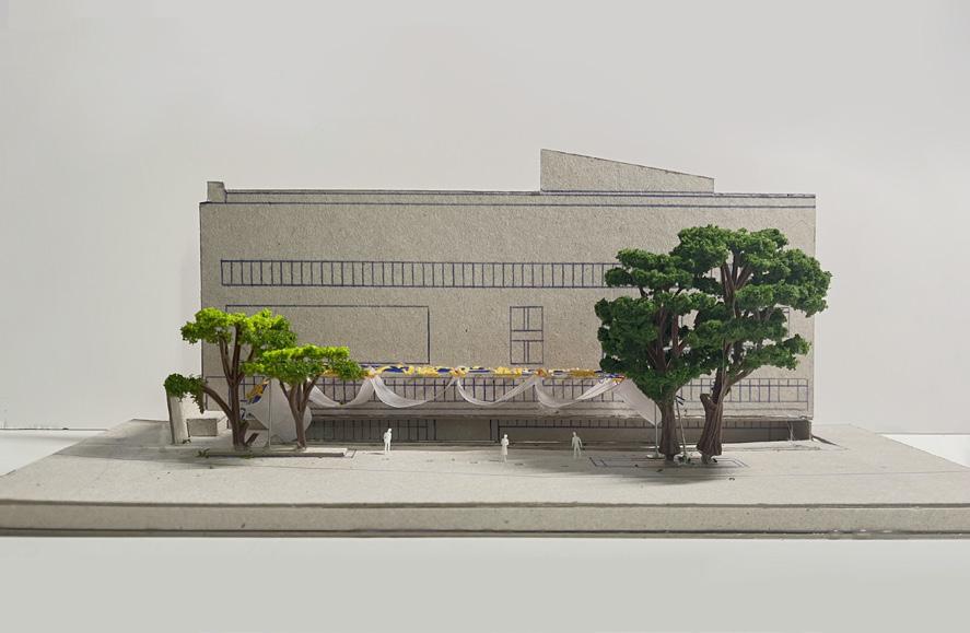 This handcrafted model primarily showcases the spatial structure of the market, emphasizing its form and integration within the high-density neighborhood. Rather than detailing specific functional spaces, it focuses on the overall form, scale, and spatial flow, highlighting the relationship between the market and its urban context.