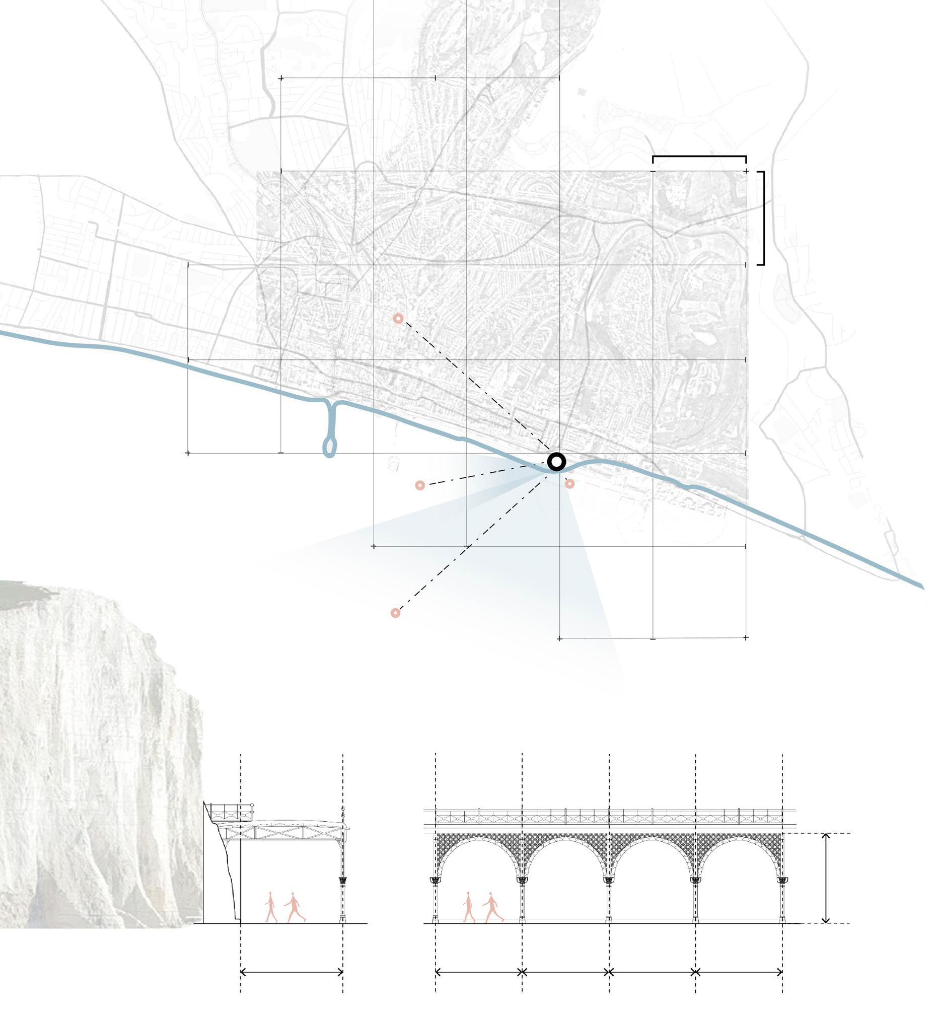 The project is located at Madeira Terrace in Brighton — an iconic seafront walkway facing the ocean and backed by chalk cliffs. With its distinctive white cliffs and stunning coastline, Brighton has long been a major tourist destination. However, the terrace near the Brighton Pier has fallen into disrepair and is currently closed to the public. The area in front of it has been converted into a car park, blocking views of the sea and making visitors feel as though the promenade ends there.